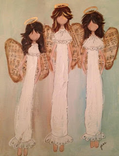 I have been working on some paintings using old sheet music for various parts... wings for angels or dresses made out of the music. It is near to my heart as I use these old pages, because they belonged to my Mother. I love to do things that remind me of her. I especially like to use things of hers to bring new life into things Sharing her things, make me feel like I am sharing her, and it makes me feel closer to her in a funny way. The best benefit of using her things or sharing them with others is that it makes me feel happy, gives me joy, to know that she is being thought of and that others can enjoy a part of her.So, with that being said.... I finished one of my little projects at my adult art class last week. This is a class that has been together for probably 10 years or so.. We have the best teacher/friend ever, Jo Anne. We used to have to get up early on registration day, stand in long lines of art class hopefuls, and then sign up for her class. She only has two adult classes and they fill up quickly. After a few years of this, can`t remember if it was her idea, or ours, but the rules were bent and she let us just continue that afternoon class without the lines. We felt like we had arrived when that happened!! It is so much more than an art class. Lots of special friendships have been born, old friendships grown closer, prayers offered up when needed. Talks of our aging parents are a common weekly discussion. Lots of love, hugs and encouragement is shared in the four walls of our art room. Yes, we say art class, but it is our fuel that gets us through the week. The art is just a bonus of our time together.But, back to my original thought.... Jo Anne encouraged me last week, with the thoughts of more pictures with the music used. I came home, energized and pulled out new pieces of canvas, paints, old pictures that needed a touch up, and lots of other art "stuff". At one point I even thanked my husband for not saying anything about the mess I was making in the den!! But he had his tax papers spread out all over his side, so we both were in a bit of a clutter. With the Decorator Show House coming soon to Birmingham, I wasn`t really ready to get my thoughts together about what I would take. They have a Symphony room where vendors take their own items to sell.... I hadn`t really been inspired to get new things going until now......That is when it happened... angels and more angels!! That would be my theme for this year to concentrate on for the Show. I love angels, even more special are the meaning of angels to me now, with Mother in Heaven. Angels were born in my den last week, on paper and canvas. As soon as I had finished painting them, I headed to the scanner to get them ready for new note cards. It was a fun working few days. This afternoon, as I sit down to write this entry, after all those hectic days of getting them all ready, they have all been marked and carried over to the Decorator Show House. All arranged in their very own spot on my pink dotted display. I am thankful for so many things as I am thinking back over last week when I started these new pictures.Thankful for my sweet "art class" and Jo Anne, who teaches and encourages with the best of them! God has sooo blessed us all when He gave her to us on each Thursday afternoon.Thankful for the opportunity to paint and share His word through the paintings and my note cards with scripture.Thankful for my sweet Mother, who instilled in me the love of creating, of using my hands, and how to love the Lord and live for HimThankful for my husband who never complains about all my clutter when I am creating or getting ready for an eventThankful for all my family and friends who endulge me with the gifts that I give them, that I have made, and act excited!!Here are some samples of new cards.They are blank, folded 4.25x5.5 size and come packaged with 10 to a pack. Mixed packages available. Each one reflects a painting that I have done ...Love this verse....Ps. 91:11 "For he will command his angels concerning you to guard you in all your ways"