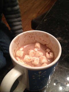 After all the stirring was done, the mix was ready to add to the water and go into the microwave to heat up. You put 3 heaping tablespoons in the cup and fill the rest up with water and you are ready to go... Then........ the fun begins.... We went to the hot chocolate bar, got the necessary toppings for our hot chocolate then... enjoy!!